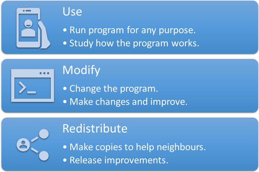 The freedom to distribute copies of your modified versions to others (freedom 3). By doing this you can give the whole community a chance to benefit from your changes. Access to the source code is a precondition for this.